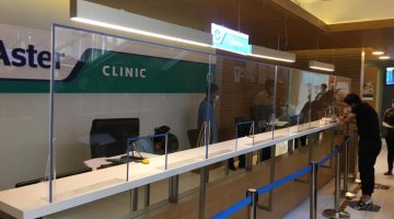View our projects on COVID protective sneeze guard, commercial sneeze guards & shields, and portable sneeze guard Aster Pharmacies And Clinics, UAE .